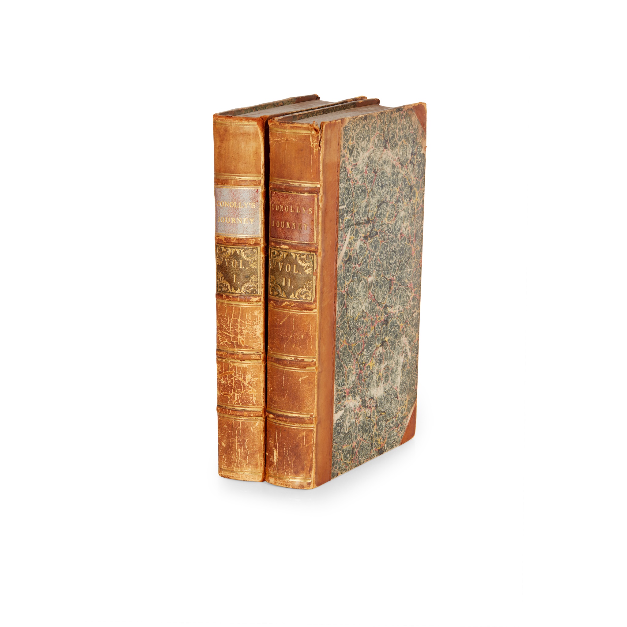 London: Richard Bentley, 1834. First edition, 2 volumes, 8vo (21 x 13cm), contemporary half calf, etched frontispiece to each volume, folding lithographic map, advertisement leaf discarded, bindings a little worn, spotting, volume 1 spine-label renewed, 1 frontispiece extended along inner margin costing imprint and description but with original title laid down, map with old repair to short closed tear