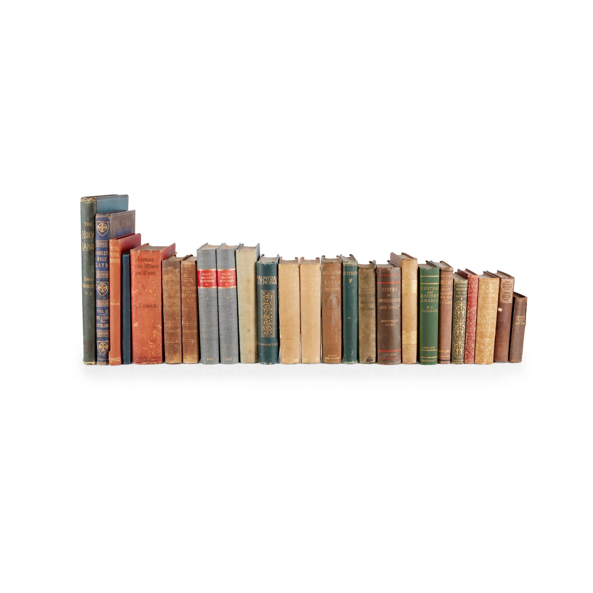 Slade, Adolphus. Records of Travels in Turkey, Greece, etc. And of a Cruise in the Black Sea, with the Capitan Pasha, in the Years 1829, 1830, and 1831. London: Saunders and Otley, 1833. Second edition, 2 volumes, 8vo, 20th-century cloth, edges untrimmed, half-titles, colour aquatint frontispieces, folding map, folding lithographic plate of manuscript facsimile;