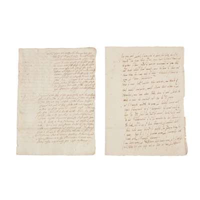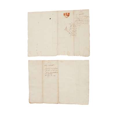the letter dated Theobalds, 30th September 1587, 2 pp., folio (28 x 20.4cm), signed ‘W. Burghley’, conjugate leaf endorsed presumably by Cobham ('from my Lord Threasorer [sic] touchinge the artykles to be observed by those that are to goo the seas, set forth by those of the ports') and addressed to him in a secretarial hand, seal tear not affecting text; the accompanying document 5 pp., folio (27.6 x 20.4cm), written in a secretarial hand, final blank with endorsement '1587 xxii September, Artikles to be observed by those of the cincq ports' in the same hand as the previous endorsement (Cobham's) and completed in a secretarial hand
