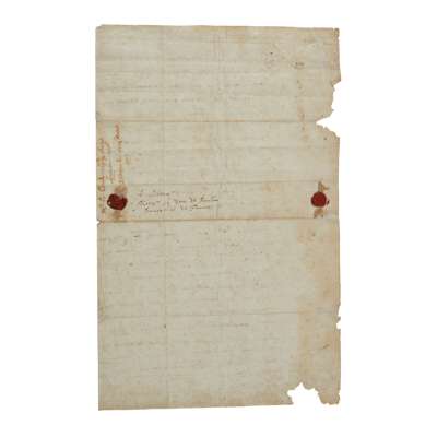 in French, on single sheet (30.5 x 19cm), 25 lines, signed ‘Essex’, verso addressed in Essex's hand ('A Monsr, Monsr le duc de Bouillon, Mareschal de France'), endorsement recording date of receipt as 23rd March 1597, and two red wax seals with silk tassels, seal tear costing part of date