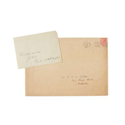 Provenance: In envelope addressed to Mr R. [?]I. W. Wilson, East Bank House, Sheffield' (franked 1926, docketed in pencil 'Frederick Douglas b1817, great negro orator'); thence by descent to David R. Wilson (1926-2020), bookseller and ornithologist (obituary: British Birds, vol. 113, issue 9, pp 560–561). The item may have originally come into the possession of the Wilson family via their connection to Sheffield abolitionist Mary Anne Rawson (1801-1887), a known correspondent of Douglass's, whose sister Elizabeth married William Wilson (1800-1866), Nonconformist radical and chairman of the Sheffield Anti-Slavery Committee (see Rawson/Wilson Anti-Slavery Papers, University of Manchester, GB 133 Eng MSS 414-415, 741-744).