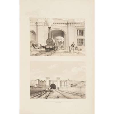 With Historical and Descriptive Account. By John Britton. London: published by the proprietor J. C . Bourne, Ackermann and Co., 1839. First edition, folio (53.5 x 37.4cm), 20th-century black crushed half morocco, repeated horizontal gilt fillets across spine and backstrip, 26 pp., tinted lithographic title-page, 29 tinted lithographic plates, engraved map, rubbing to joints and extremities, a little cracking to joint-ends, all plates and text-leaves mounted on linen stubs, plates variably spotted, tide-mark to head of title-page and first plate [Abbey Life 398, with coloured plates]