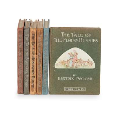 The Tale of the Flopsy Bunnies. London: Frederick Warne and Co., 1909. First edition (endpapers match Quinby Plate 7), spine and boards slightly discoloured, very small dampstain to rear endpaper [Quinby 16];