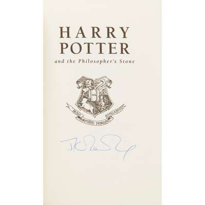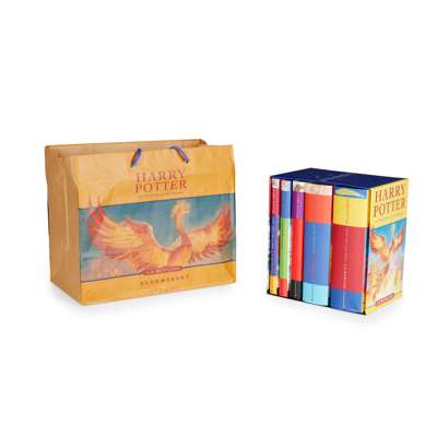 Harry Potter and the Philosopher's Stone [...] Chamber of Secrets [...] Prisoner of Azkaban [...] Goblet of Fire [...] Order of the Phoenix. London: Bloomsbury, 2003. First edition, first impression of Order of the Phoenix, later impressions of the remaining volumes (and Goblet of Fire a Canadian issue), 8vo, original pictorial boards, with the dust jackets, signed by Rowling in blue ink on the half-title of each volume, housed in the publisher's pictorial slipcase and paper gift bag