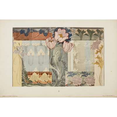 Stoll, Christian, publisher. Moderne Blumen-Ornamentik. Plauen iv. Leipzig, [n.d. but c.1905] Folio (32.5 x 48cm) containing 24 loose chromatic prints, original covers and title leaf;