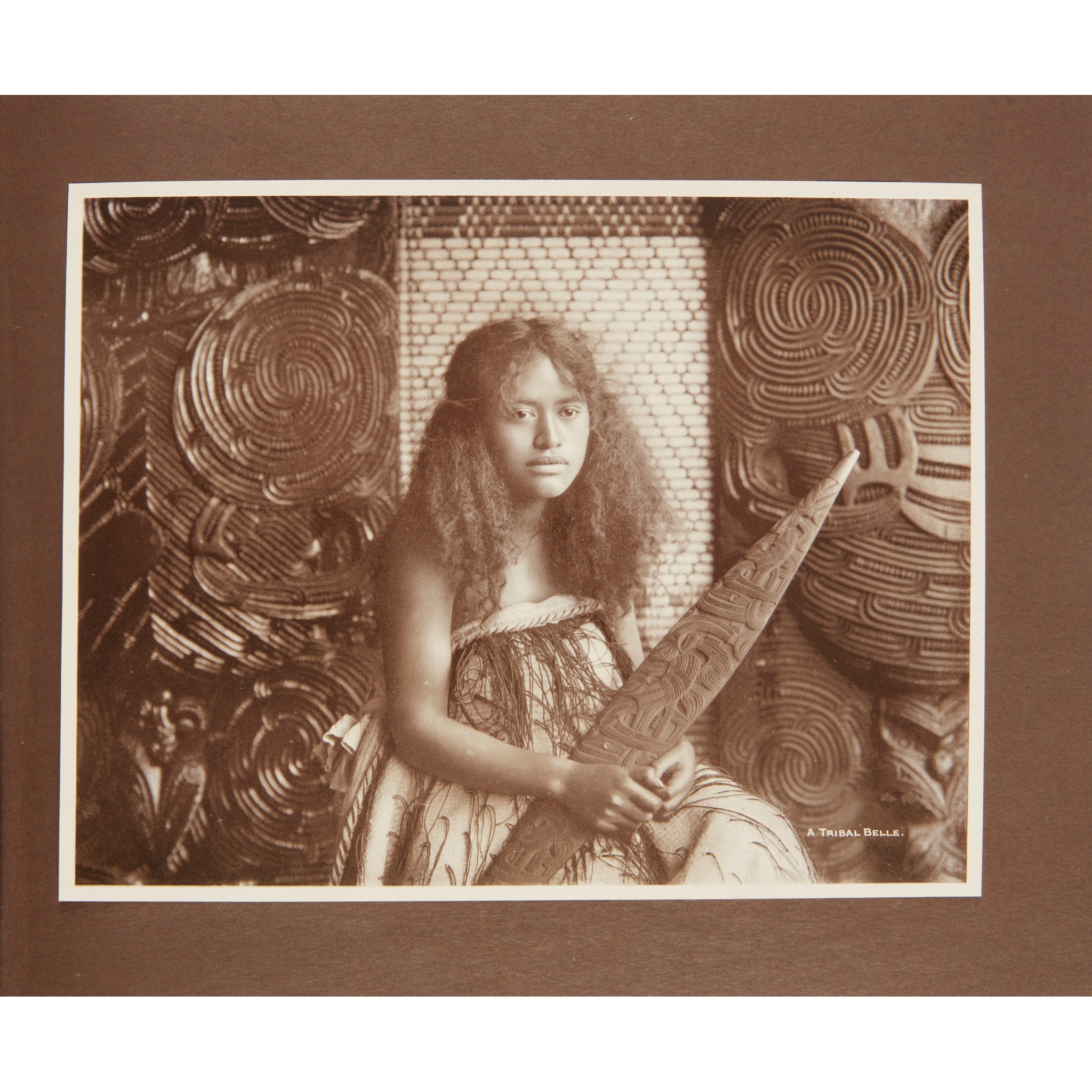 Permanent Carbonette Photos. Wellington: Thos. Pringle, c.1900. Oblong 4to, original card wrappers with mounted carbon-print photograph to front cover, 12 carbon-print photographs (18.5 x 23.5cm) mounted on rectos only of brown thick-paper leaves, extremities of binding rubbed