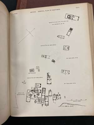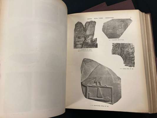 Egypt Exploration Fund. London: The Egypt Exploration Fund, 1894-1907. 5 works, folio, contemporary quarter morocco, black and white plates featuring contemporary photographs, Manchester Libraries labels and stamps, boards blind stamped, titles comprise: