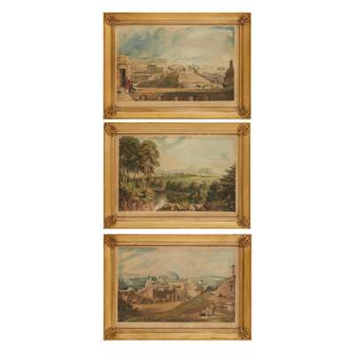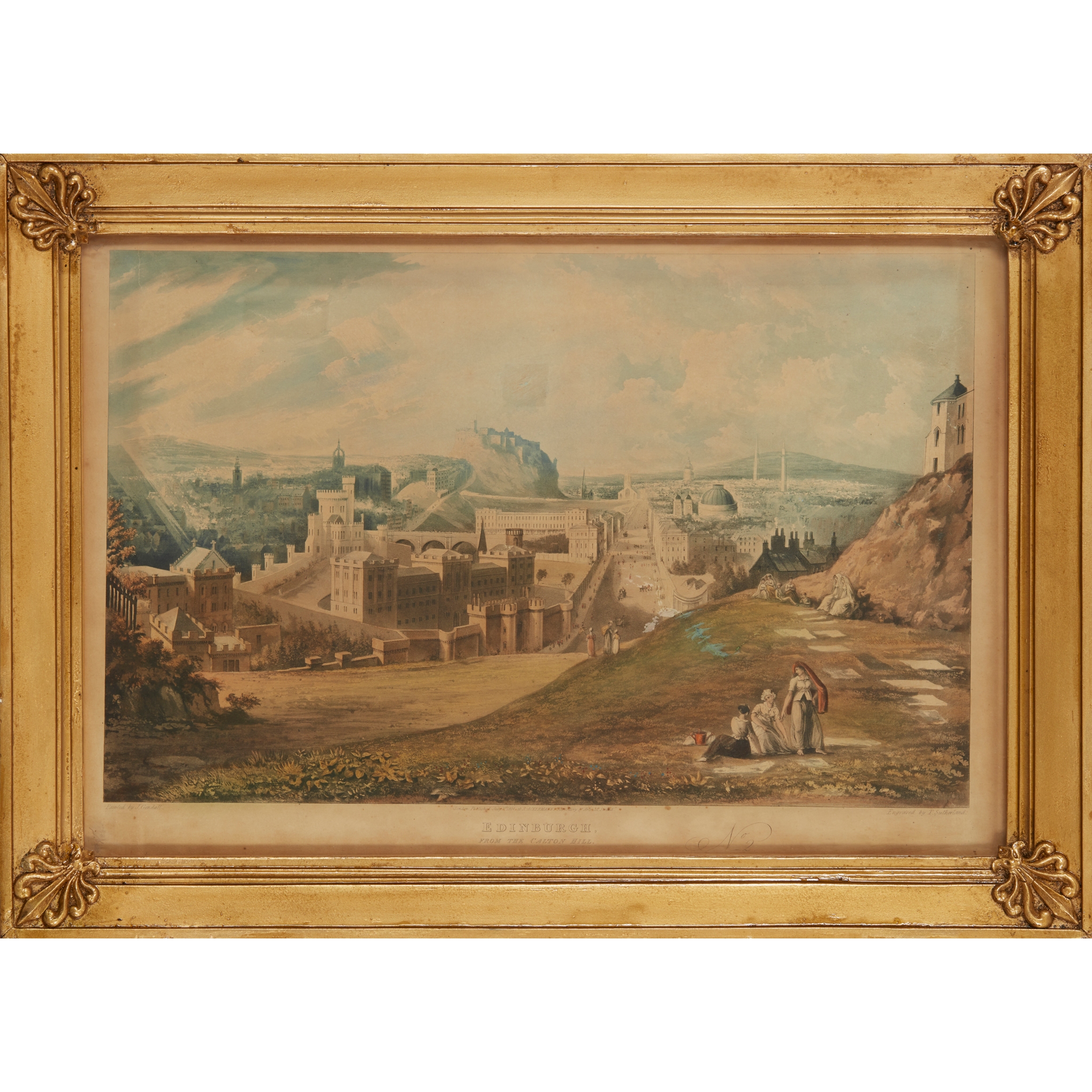 [Comprising:] Edinburgh, from Craigleith Quarry; Edinburgh, from the Castle; Edinburgh, from the Calton Hill. London: R. Ackermann, 1824. Each 36.5 x 54cm, framed and glazed, toning