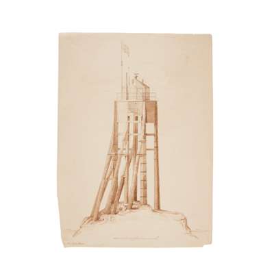 White, P.W.? Sketch of Lundy Island Light House, 15 x 22cm;
