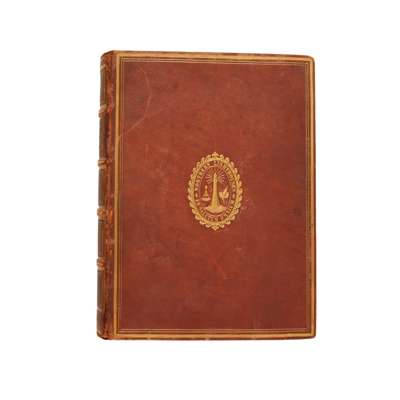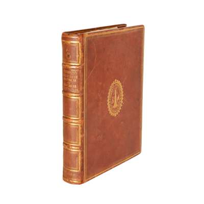 with Notes on the Illumination of Lighthouses. Edinburgh: Adam and Charles Black 1848. First edition, 4to, contemporary reddish-brown morocco by Alexander Banks Junior of Edinburgh, arms of the Northern Lighthouse Board gilt to covers, x [5] 10-439 pp., engraved frontispiece, folding table, 33 engraved or aquatint plates, Stevenson family ownership inscription to title-page, occasional pencilled marginalia, laid-in leaf of manuscript notes on letterhead of David Alan Stevenson facing plate 17, front joint rubbed, frontispiece loosening, tissue-guard creased