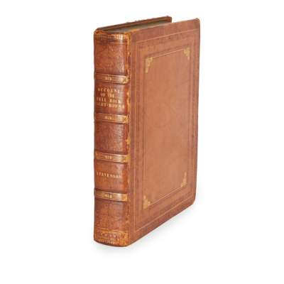 Edinburgh: Archibald Constable and Co., 1824. 4to, contemporary diced russia decorated in gilt and blind including a palmette roll along edges of covers, engraved frontispiece after J. M. W. Turner, engraved additional title-page (both on india paper, mounted), 21 engraved plates and charts (many folding), inscribed on the initial blank ‘To the Right Honbl Lord Viscount Melville, from the Commissioners of the Northern Lighthouses’, engraved bookplate of Viscount Melville, joints and extremities rubbed, rear joint cracking at foot, a few plates offset