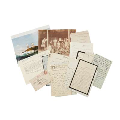 Strong, Isobel [Robert Louis Stevenson's stepdaughter] Autograph letter, signed, undated, Honolulu, Hawaii, addressed to David Stevenson Esq.: "Dear Sir, my mother begs me to write and tell you that we return to Samoa in the latter part of April. As soon as we get home we will collect all the papers, diaries etc. about Mr . Stevenson's forefathers and send them to you..."