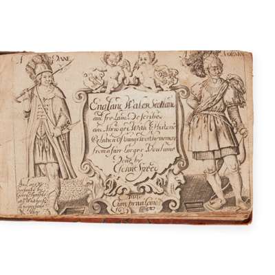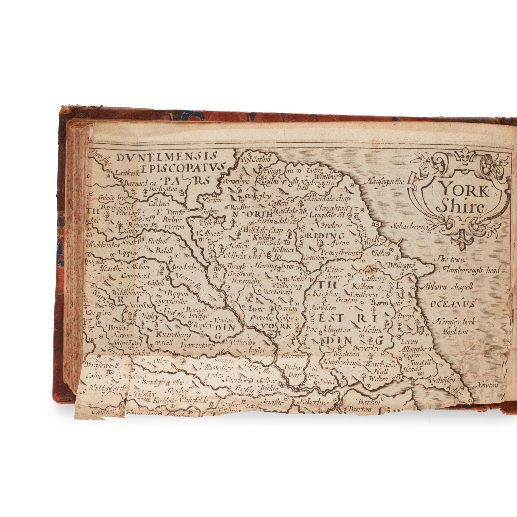With ye historic relation of thingsworthy from a farr larger volume. [date unclear.] Small oblong 8vo, engraved title-page, 43 maps only (of 63), plus Devonshire duplicated with one copy detached, contemporary half calf, some leaves closely trimmed with loss to text and engraved areas in places, one map torn