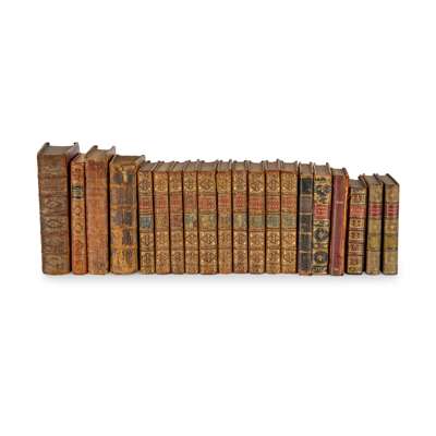 and 23 others (these not collated), including: Lucius Apuleius, Les metamorphoses ou l'asne dor, Paris; Samuel Thiboust, 1623 (8vo, contemporary calf, engraved title-page); Thomas Fuller, Pharmacopoeia Extemporanea: or, a Body of Medicines, 1719 (third edition, modern panelled morocco); William Tothil, The Transactions of the High Court of Chancery, 1649 (12mo, contemporary calf, rebacked, front board and title-page detached); Virgil, Opera, Leiden: ex officina Elzeviriana, 1649, 12mo, contemporary calf, front board detached); A Cloud of Witnesses for the Royal Prerogatives of Jesus Christ: or, the Last Speeches and Testimonies of those who have suffered for the Truth in Scotland, Glasgow, 1741 (8vo, contemporary sheep); Thomas à Kempis, The Christian's Pattern, 1708 (contemporary calf, rebacked); John Coakley Lettsom, The Naturalist's and Traveller's Companion, 1799 (8vo, contemporary calf, rebacked, engraved plates including hand-coloured title-page, ex-library copy); Emanuel Swedenborg, A Treatise concerning Heaven and its Wonders, also concerning Hell … a New Translation, London: Society for printing and publishing the Writings of Emanuel Swedenborg, 1817 (8vo, contemporary blue half calf); Thomas Bewick, A History of British Birds, 1832 (2 volumes, 8vo, contemporary half calf); idem. A History of British Quadrupeds, 1824 (eighth edition, 8vo, contemporary calf); and similar (37)