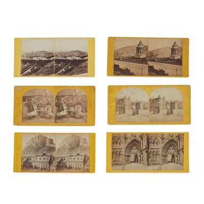 28 views by G.W. Wilson including Edinburgh, Balmoral, the Western Isles, Abbotsford and a paddle steamer on the Clyde, 29 views by Archibald Burns, Ingils, McGlashon and others, mainly of Edinburgh including Newhaven fishwives and The Whitehorse Inn, some with fading, edge wear and surface marks to mounts (57)