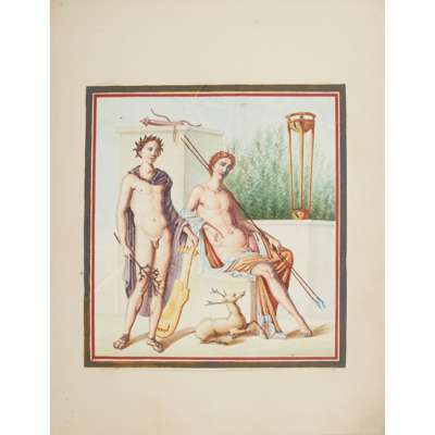 Scrap/commonplace album initialled ‘JAS’, including various illustrations and four coloured copies of murals in Pompeii;