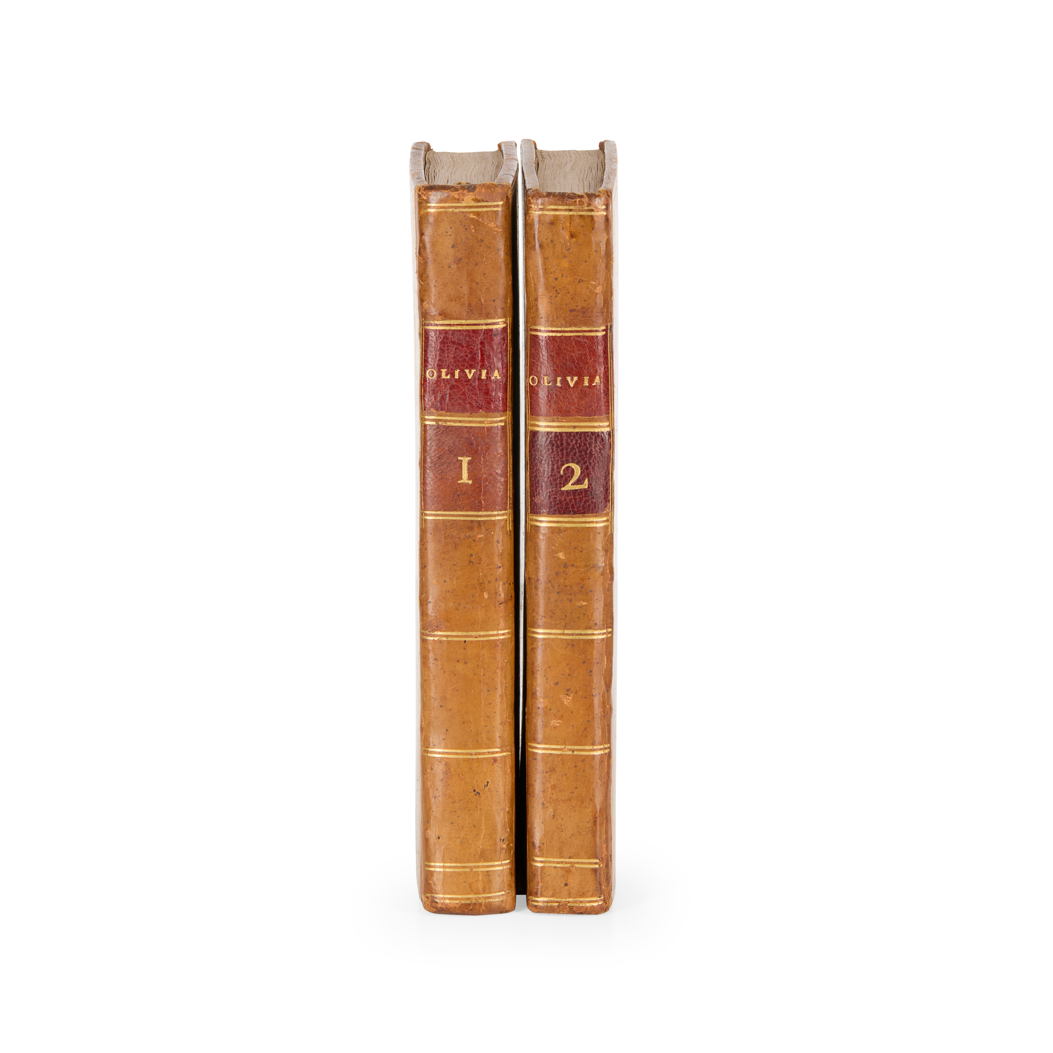 By the Author of Hortensia, the Rambles of Frankly, and the Fashionable Friend. Dublin: for W. Watson [and 6 others], 1787. 2 volumes, 12mo, xi [1] 274, [4] 272 pp., contemporary speckled tan calf, twin labels to spines, spines and covers ruled in gilt, edges sprinkled red, bound with the half-titles, volume 1 final leaf with tear to upper fore corner not affecting text, volume 2 with spill-burns to K12 (2)