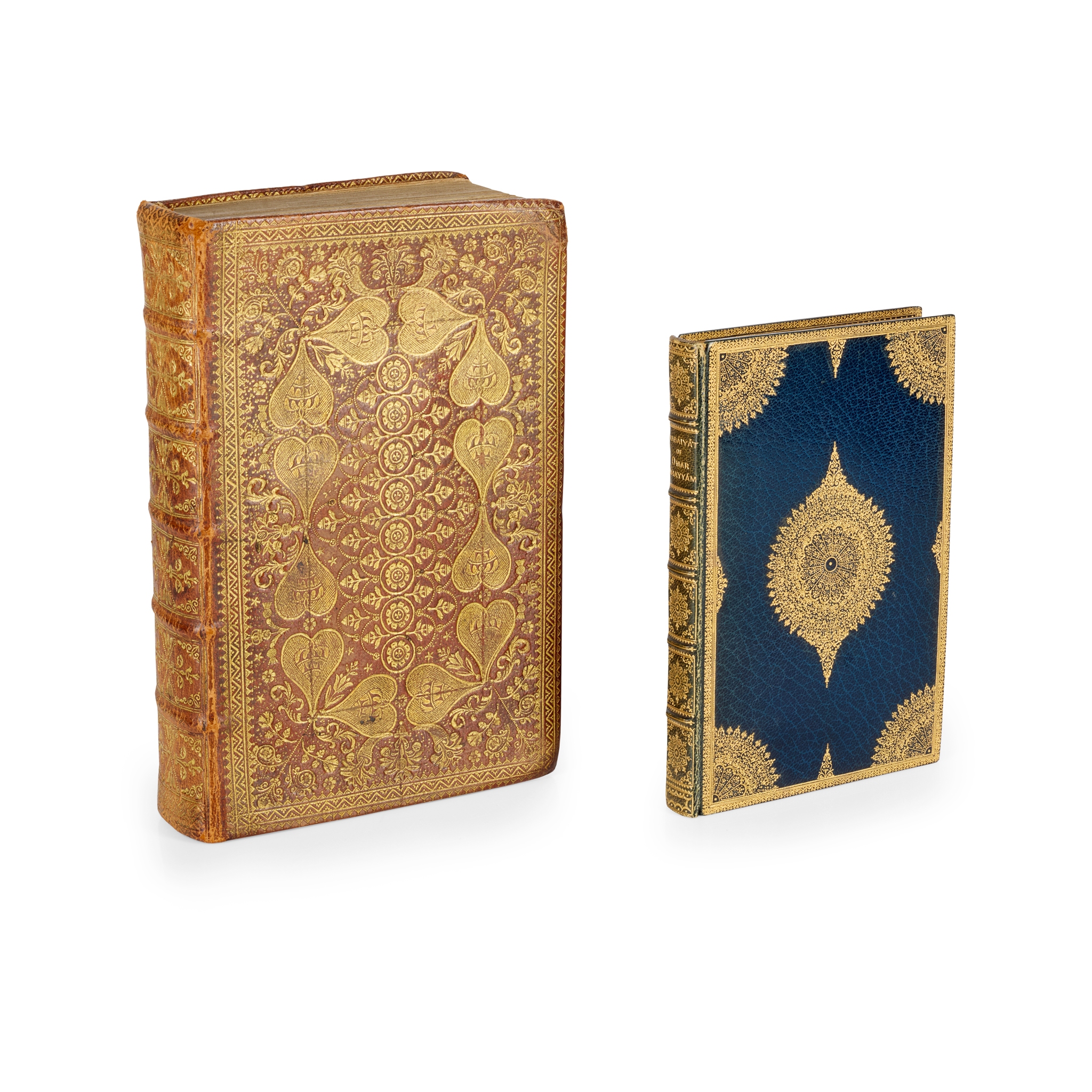 Together with 20 others, English literature, finely bound, 18th-20th century, including Rubaiyat of Omar Khayyam, 1902 (12mo, contemporary dark blue crushed morocco by Ramage, spine, covers and turn-ins elaborately gilt, white silk doublures spotted), Novum Testamentum Graece, Glasgow, Hutchison & Brookman, 1829 (12mo, contemporary maroon morocco); and similar (34)