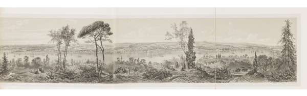 Paris: Frick Frères, [c.1855]. Oblong folio, with 8 plates forming 2 panoramas (each measuring 238 x 1240mm), each consisting of 4 lithographed plates, folds strengthened with tape on verso, one section detached; 10 lithographed plates (7 lithographed in colour), original brown cloth decorated and lettered in gilt, very slightly rubbed, hinges slightly weak