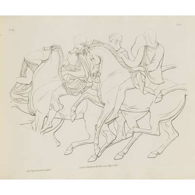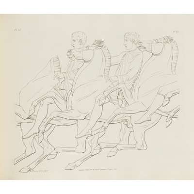 exemplified by Fifty Etchings, selected from the most beautiful and least mutilated specimens in that collection. London: sold by the author, [&c.], 1818. First edition, oblong folio, 49 (of 50) etched plates, lacks plate 47, 19th century red half morocco, rubbed and scraped, front endpapers creased and slightly frayed