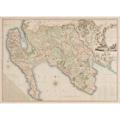 Ainslie, John A Map of the County of Renfrew. Surveyed by John Ainslie in 1796. London: W. Faden, 1801. Second edition, map on 4 sheets, 104 x 116cm (image size), hand-coloured in outline, mounted on linen with a W. Faden label to each part, [BL, Bodleian, Glasgow & NLS copies - Worldcat & Copac]; Ainslie, John A Topographical Map of the Stewartry of Kirkcudbright, Surveyed by John Ainslie, 1796. London: W. Faden, 1801. Second edition, map on 4 sheets, 104 x 116cm (image size), hand-coloured in outline, mounted on linen with W. Faden label to each part, [BL, Bodleian, NLS and 1 copy in Germany - Worldcat & Copac]; Ainslie, John A Topographical Map of the County of Wigton or Shire of Galloway. Surveyed by John Ainslie, 1782. London: W. Faden, 1801, Second edition, map on 4 sheets, 78 x 108cm, mounted on linen, hand-coloured in outline, [One copy only Germany in Worldcat & Oxford on Copac]; Ainslie, John A Map of Selkirk Shire or Ettrick Forest, from a Survey taken in the year 1772 by J. Ainslie. London: W. Faden, 1801. Second edition, map on 2 sheets, 66 x 66cm, hand-coloured in outline, mounted on linen, imprint in bottom right-hand corner has been overprinted most probably on the erased Ainslie 1773 imprint leaving only the word Edinburgh decipherable, [BL & Bodleian copies only on Worldcat & Copac]; the 4 maps contained in a contemporary calf 'pull-off' case with red morocco label lettered in gilt, case slightly rubbed