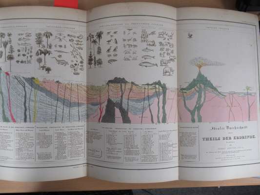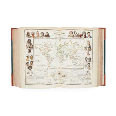 Physikalischer Atlas. Gotha: von Justus Perthes, 1845-48. 2 volumes in one, folio, 92 (of ?93) hand-coloured engraved maps or tables, comprising Meteorology (15, including 5b and 5c), Hydrography (16), Geology (15), Magnetism (5), Plant geography (6), Thiere (12), Anthropology (4), Ethnology (19), mostly double-page, later half calf, occasional spotting, most hand-coloured or with outline hand-colour, occasional spotting, stains to a couple of maps, later half calf; sold not subject to return