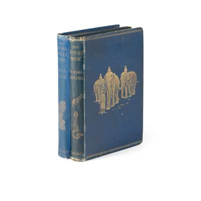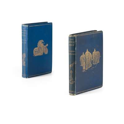 The Jungle Book. London: Macmillan and Co., 1894. First edition, first impression with R. & R. Clark listed as the printer with no Ltd. company status, 8vo, frontispiece, original blue cloth gilt, some light internal soiling, hinges a little split, some rubbing to covers, shelf-lean, joints worn; [Idem] The Second Jungle Book. London: Macmillan and Co., 1895. First edition, 8vo, original blue cloth gilt, some light dampstaining to lower corners of leaves; a little light foxing to both volumes (2)