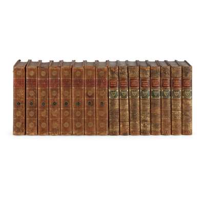 Gibbon, Edward The History of the Decline and Fall of the Roman Empire. London: T. Cadell, 1838. New edition, 8 volumes, 8vo, portrait frontispiece, 3 folding maps, contemporary calf gilt with red and green calf gilt labels to spine, some neat repairs to corners; Hume, David The History of England. London: T. Cadell, 1789. 8 volumes, 8vo, portraits, contemporary calf gilt, neat ownership inscriptions, front free-endpapers clipped, joints a little worn (16)