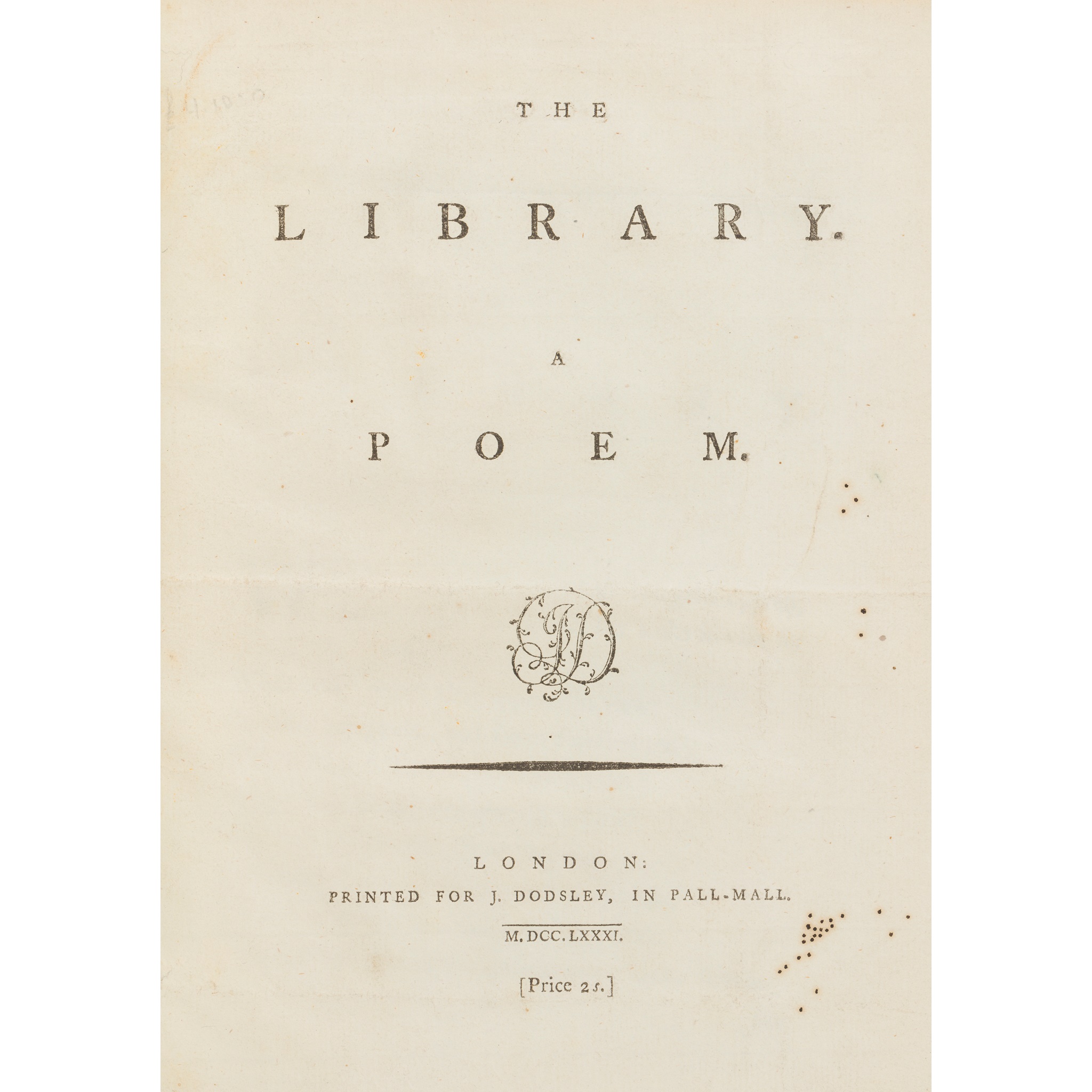 London: Printed for J. Dodsley, 1781. First edition, 4to, 34pp. + final blank leaf, sewn as issued, quarter vellum gilt over marbled boards, some slight marking to title-page [ESTC T40881]