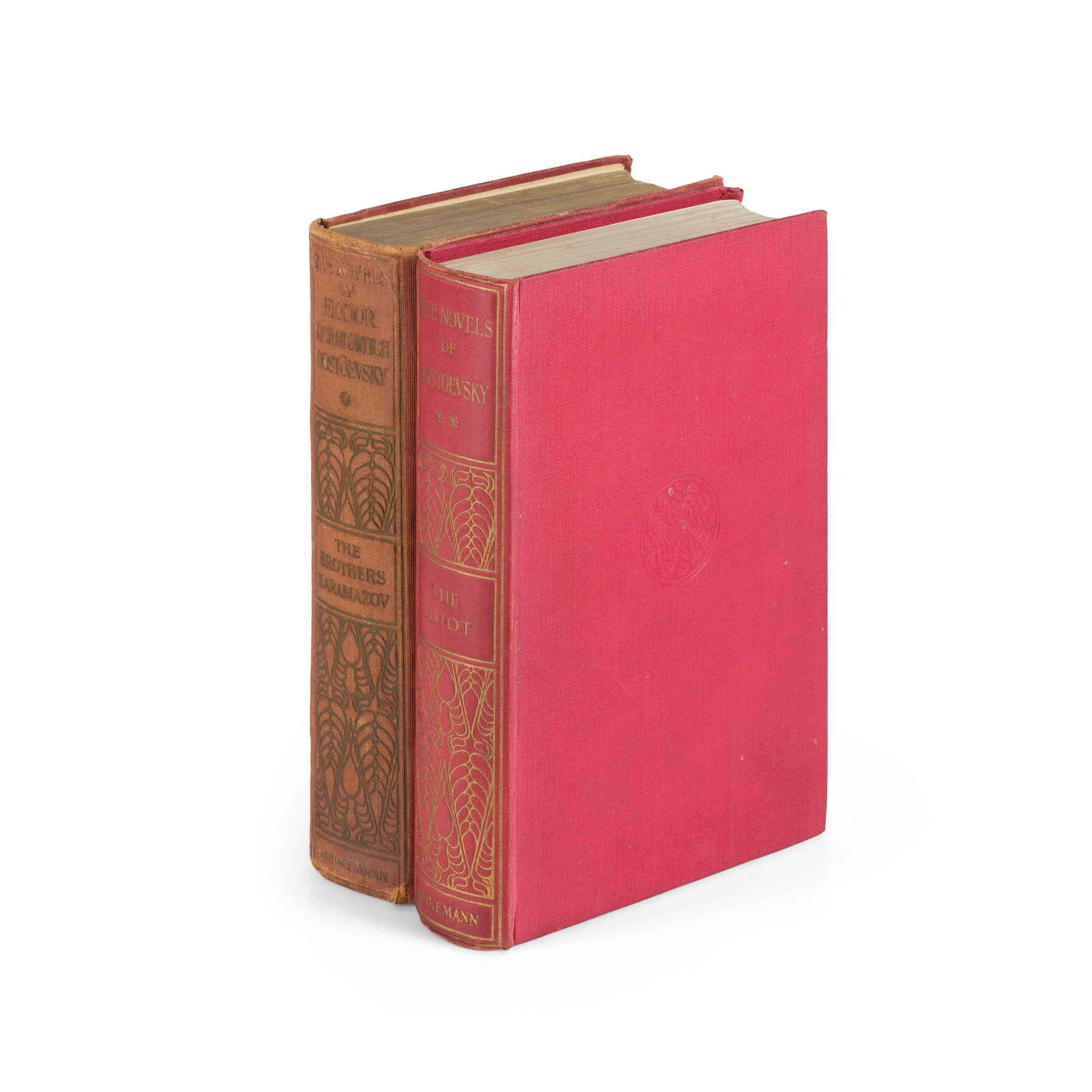 London: William Heinemann, 1912. First edition in English, 8vo, translated by Constance Garnett being no.1 of Heinemann's 'The Novels of Dostoevsky', original red cloth gilt, some fading to spine, hinges slightly split with repair to lower hinge; [Idem] The Idiot. London: William Heinemann, 1913. 8vo, translated by Constance Garnett being no.2 of Heinemann's 'The Novels of Dostoevsky', original red cloth gilt, bookplate of Gilbert Baines (2)