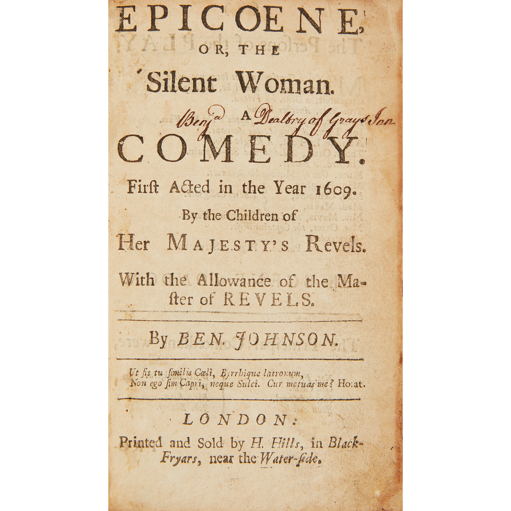 Epicoene, or the Silent Woman; Volpone or the Fox; Catiline his Conspiracy; The Alchemist. Shadwell, Thomas. The History of Timon of Athens, all works: London: Printed and Sold by H. Hills, [1710 ?], 5 works in one volume, 12mo, contemporary calf, neatly rebacked, slightly rubbed