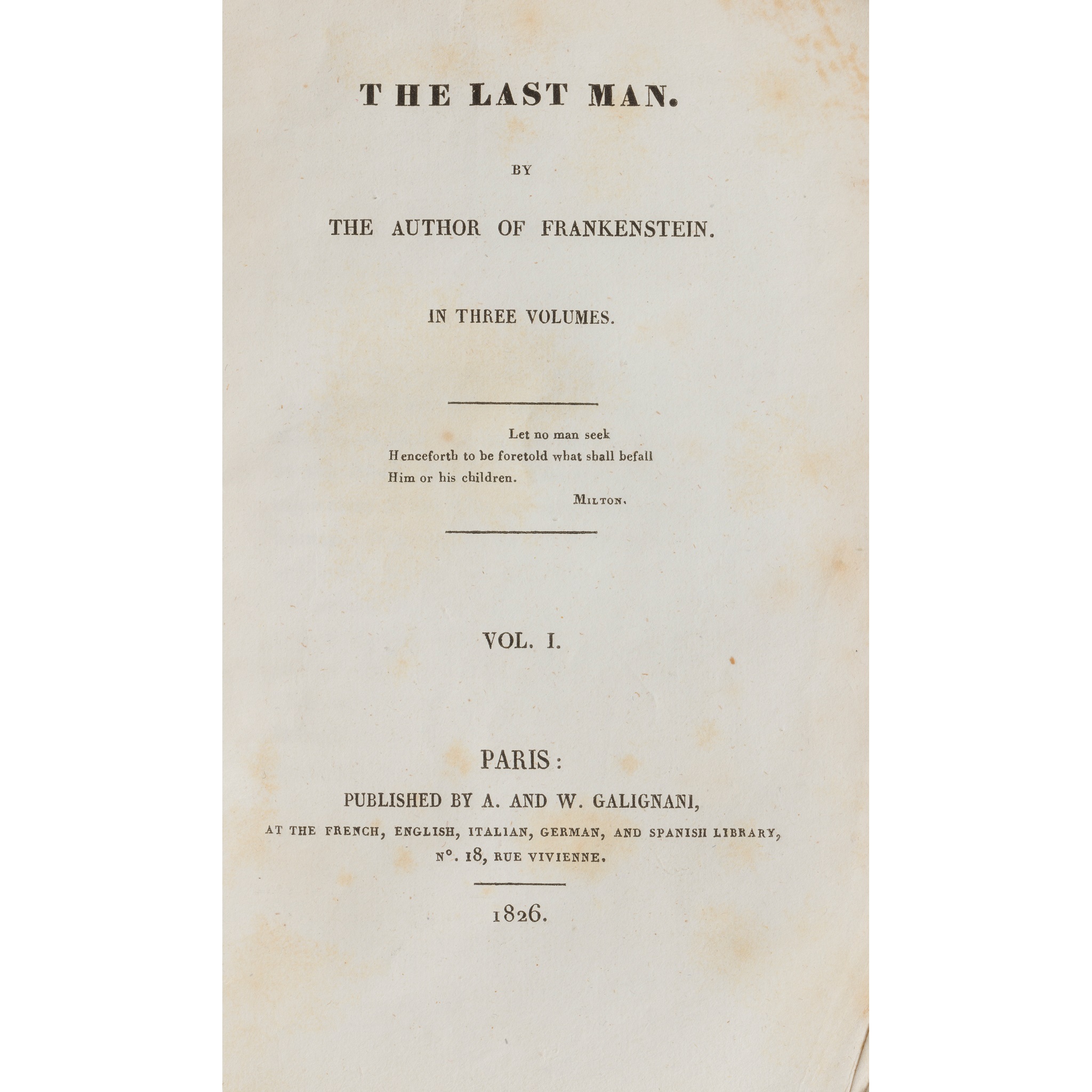 Note: The first edition printed in Paris. Henry Colburn also published two editions in London in the same year