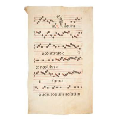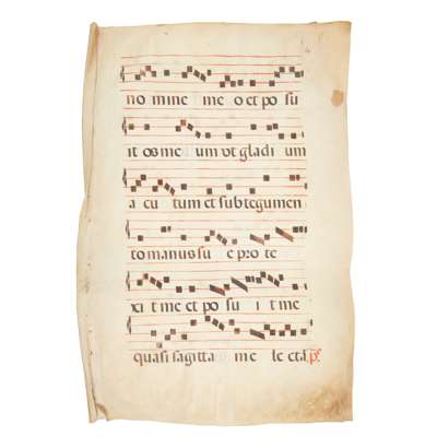 in Latin, red and black with 11 illuminated initials, 17th century or later, each leaf c.46 x 71cm, some creasing and marginal tears