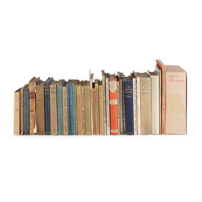 The Millionairess... Privately printed [for use of the author], March 1940. 8vo, with loosely inserted portrait postcard, signed, from Bernard Shaw to J.B. Maclachlan, original wrappers; [Idem] The Intelligent Woman's Guide to Socialism and Capitalism. London: Constable and Company, 1929. 'Popular edition', 8vo, original cloth; [Idem] The Quintessence of Ibsenism. London: Walter Scott, 1891. 8vo, original blue cloth gilt, bookplate, ownership signature and stamp; [Idem] Selected Passages from the Works of Bernard Shaw chosen by Charlotte F. Shaw. London: Constable and Company Ltd., 1912. 8vo, original cloth gilt; [Idem] The Sanity of Art. London: The New Age Press, 1908. 12mo, original wrappers; [Idem] How to Settle the Irish Question. Dublin: The Talbot Press, 1917. 8vo, original wrappers; [Idem] What Bernard Shaw told the Americans about Russia! [A Little Talk on America]. London, 1931. Second printing, 8vo, original wrappers; [Idem] Ruskin's Politics. London: The Ruskin Centenary Council, 1921. 8vo, original boards, pages uncut, bookplate; [Idem] Shaw on Stalin. London: the Marston Printing Co. for the Russia Today Society, 1941. 8vo, original wrappers; [Idem] Statement of the evidence in chief of George Bernard Shaw before the Joint-Committee on Stage Plays... Edinburgh, 1919. Privately printed, 8vo, original wrappers; [Idem] Peace Conference Hints. London: Constable & Co. Ltd., 1919. 8vo, original wrappers; [Idem] The Common Sense of Municipal Trading. Westminster: Archibald Constable & Co., Ltd., 1904. 8vo, original blue cloth; [Idem] Everybody's Political What's What? London: Constable and Company Limited, 1944. 8vo, dust-jacket not price-clipped; and 24 others (37)