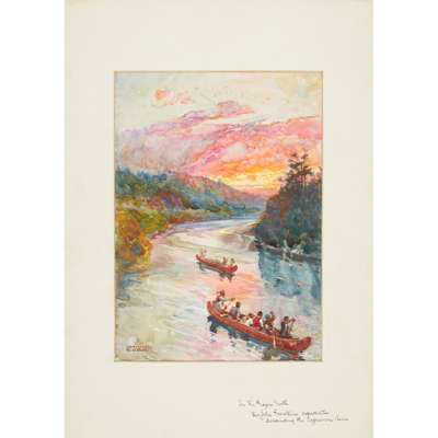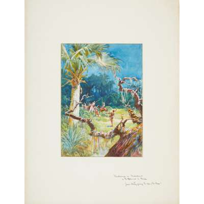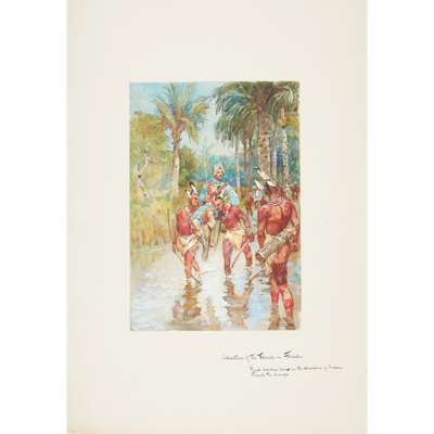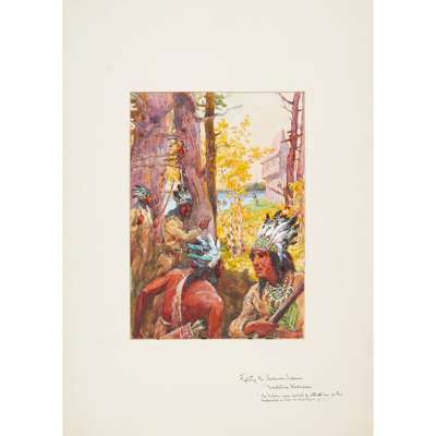The Sign of the Cross; A March through the Swamps; An Alarm - Too Late!; Lurking Foemen; Sport turned to Earnest; A Babe in the Backwoods; Voyaging on Fresh Water; Carried into Captivity; Indian Revelry; Fighting the Iroquois Indians; ink and watercolour on paper with captions, each approximately 29 x by 19cm, some mounted or laid down to card, most dated, all signed (10)