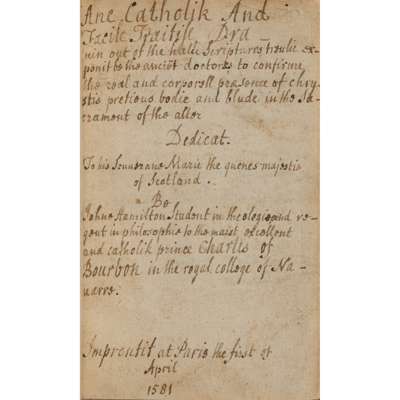 [Paris: T. Brumen, 1581.] 16mo, contemporary calf rebacked with later spine, lacking two titles, the first replaced in manuscript, bookplate, headlines a little shaved, some very minor dampstaining towards rear [ESTC S116714 listing only 11 copies in the British Isles and USA]