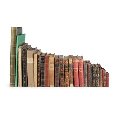 Squier, E.G. Notes on Central America. New York: Harper & Brothers, 1855. 8vo, contemporary calf, lower cover detached; Read, John Meredith A Historical Inquiry concerning Henry Hudson... Albany: John Munsell, 1866. 8vo, ALS from the author bound in, orange half morocco gilt, bookplate; Lossing, Benson J. The Hudson from the Wilderness to the Sea. New York; Smith, James Reuel Springs and Wells of Manhattan and the Bronx, New York City. New York: The New York Historical Society, 1938. 8vo, brown quarter morocco; The Evolution of New York. New York, 1897. 4to, blue half morocco gilt, Zabriskie bookplate; Darley, Felix O.C., illustrator The Legend of Sleepy Hollow. The American Art-Union, 1849. Oblong 4to, original wrappers, slight dampstaining; Milbert, J. Picturesque Itinerary of the Hudson River... , facsimile reproduction in green card folder; Murphy, Henry C. Journal of a Voyage to New York. Brooklyn, 1867. 8vo, later cloth; Loomis, Elias A Treatise on Meteorology... New York: Harper & Brothers, 1868. 8vo, contemporary calf, upper cover detached, lower cover lacking; Henslow, T. Geoffrey Ye Sundial Booke. London, 1914. 8vo, contemporary blue half morocco gilt; Du Chaillu, Paul B. The Viking Age. London: John Murray, 1889. 2 volumes, 8vo, original red cloth gilt; Eutropius Eutropij de Gestis Romanorum Libri Decem. Paris: Simon de Colines, 1539. 8vo, contemporary calf, upper board detached, a few neat notes in an early hand; Buchanan, George Poemata... Leiden: Elzevir, 1628. 24mo, later red morocco, upper cover detached; Villon, Françoys. Le Testament Françoys Villon. Paris: la Sirène, 1918. 8vo, red calf gilt with embossed hanging men motif, chipped and darkened; [Scott, Tom] The Cruise of the Midge. Edinburgh: William Blackwood and Sons, 1836. 2 volumes, 8vo, blue straight-grained morocco gilt, bookplates of George A. Zabriskie and Lilian Henkel Haas; The Society of the Antiquaries of Scotland Transactions, volume 1. Edinburgh: William and Alexander Smellie, 1792. 4to, modern boards; An Elementary Manual of Heraldry. New York: Gorham Company, 1905. 16mo, red half morocco gilt; Pater, Alastair and Walter Sebastian van Storck. London: John Lane The Bodley Head, 1927. 4to, number 352 of 1050 copies, original cloth, slipcase; The Universal Historical Atlas... New York: Warren Cockroft and Company, 1873. Folio, original green half morocco gilt; and 6 others, sold not subject to return
