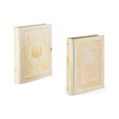 Folk-Tales of Bengal. London: Macmillan and Co., 1912. 4to, one of 150 copies, 32 tipped-in colour plates, original vellum gilt, ties lacking, covers slightly soiled, some light internal spotting; Thomson, Hugh, illustrator - J.M. Barrie Quality Street. London: Hodder & Stoughton, [1913]. 4to, number 378 of 1000 copies signed by Hugh Thomson, 22 tipped-in colour plates, original vellum gilt, ties lacking (2)