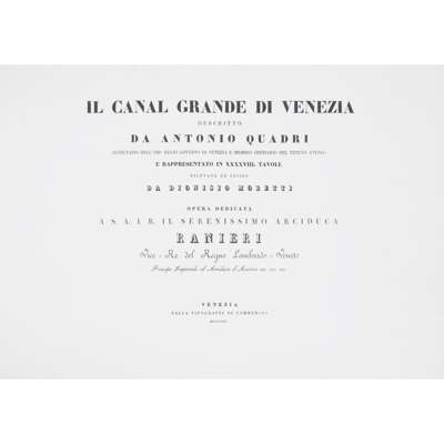 Venice: Dalla Tipografia di Commercio, 1831. Oblong folio, additional engraved vignette title-page, engraved map and 47 plates, original printed paper boards, some foxing, boards in plastic coating, endpapers renewed, a little light spotting