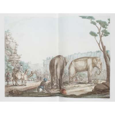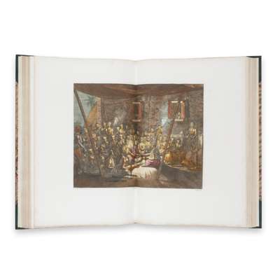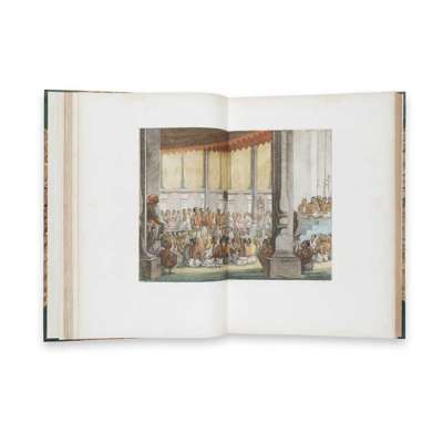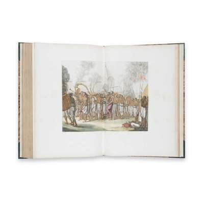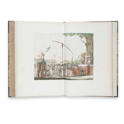 Oû Descripion de Leurs Moeurs, Costumes et Cérémonies. Paris: Chez l'Auteur...et chez H. Nicolle, 1808-12. First French edition, 4 volumes, folio, four colour-printed etched vignette titles and 288 colour-printed etched plates (many hand finished), later green half calf gilt in a sensitive and contemporary style, top edges gilt, a little foxing and browning, mostly very light and predominantly in volume 1, a few plates sensitively remargined with later mounts, crease to half-title of volume 1 with name trimmed from upper right edge [Abbey, Travel, 430] (4)