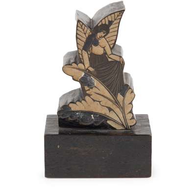 Note: Evidently conceived and carved as a discrete object, this icon is a truncated version of an wood-engraving which appeared in the Golden Cockerel Press edition of Troilus and Criseyde, published in 1926, where the branch extends to the length of the page.