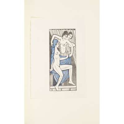 16. Ecce tu pulchra es, from Canticum Canticorum, 1929, variant state overprinted in blue with a second woodblock, inscribed by Gill '2/12 Eric G' [P614: 'not used']