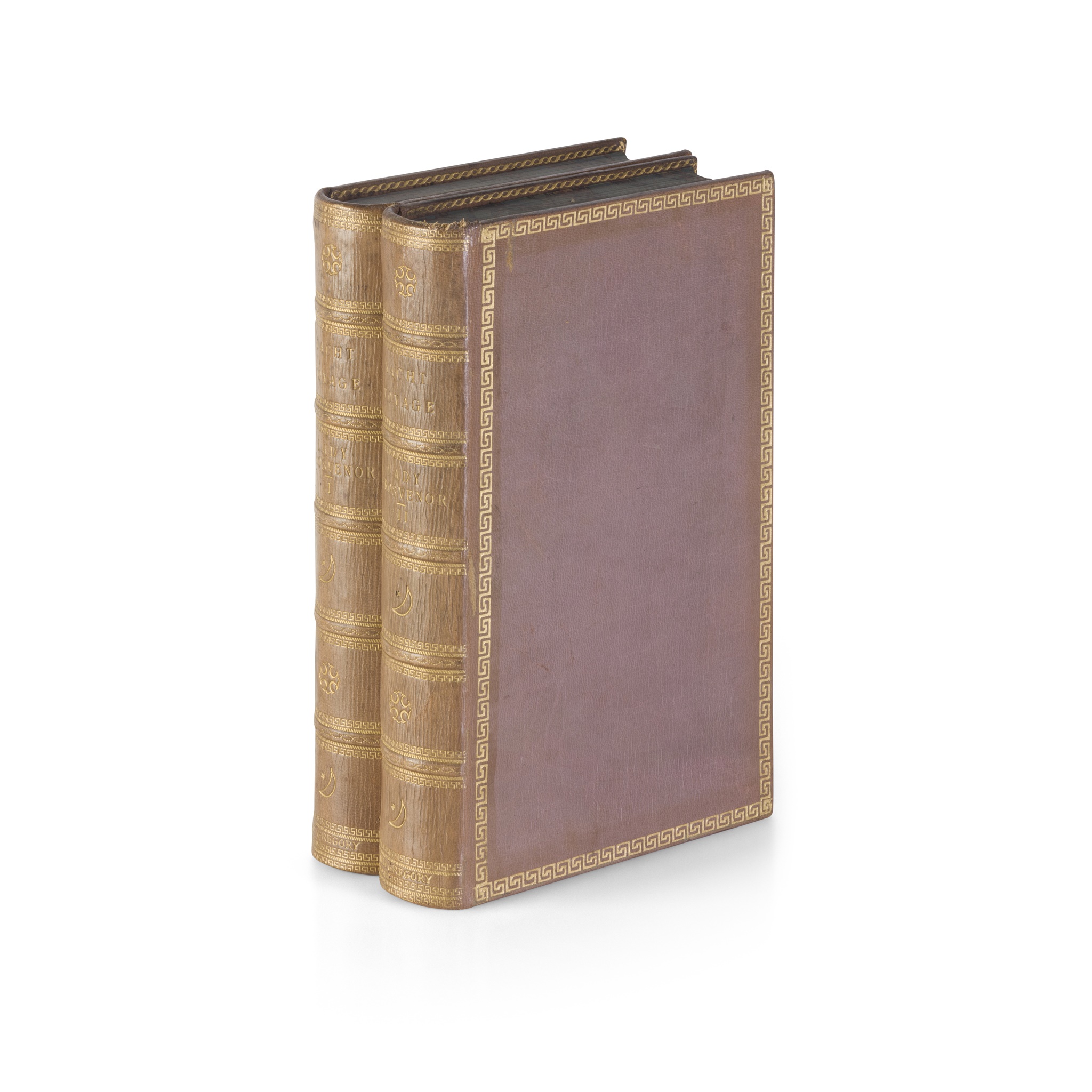during the years 1841 and 1842. First edition, 2 volumes, 8vo, presentation copy from the authoress to Mr Gregory, 26 lithographed plates, personalised binding of full mauve morocco with owner's name at foot of spines, the plates slightly spotted, armorial bookplates of the Rt. Hon W.H. Gregory, Colle Park, Gort, Ireland
