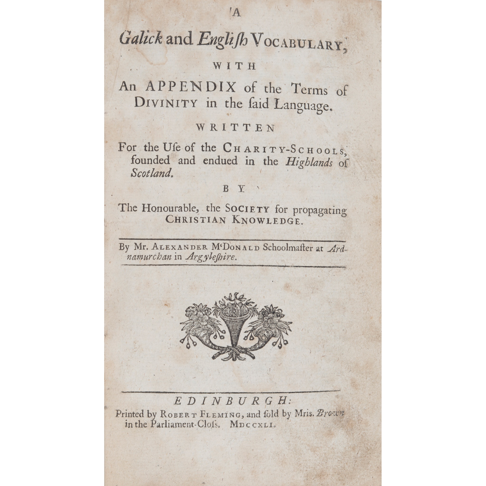 Edinburgh: Mris. Brown, 1741. 8vo, [ESTC T90552]; [bound with] Shaw, William An Analysis of the Galic Language. Edinburgh: W. and T. Ruddiman, 1778. 8vo, [ESTC T149618]; contemporary tree calf, neatly rebacked retaining original spine, endpapers renewed, bookplate, browned with occasional dust marks, ownership inscription of Hugh McLauchlan 1802 to the verso of the final leaf