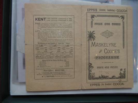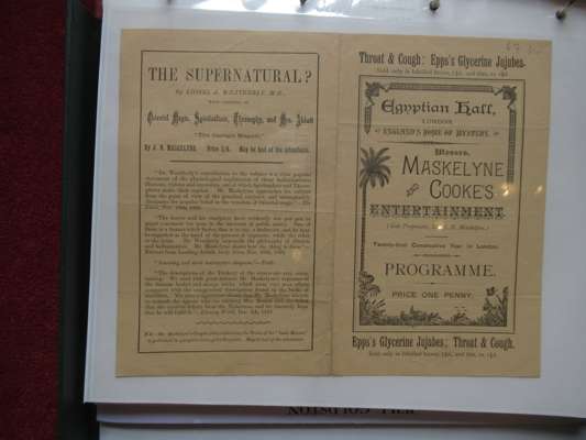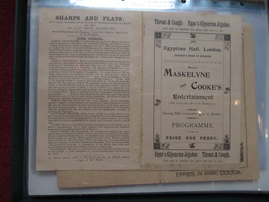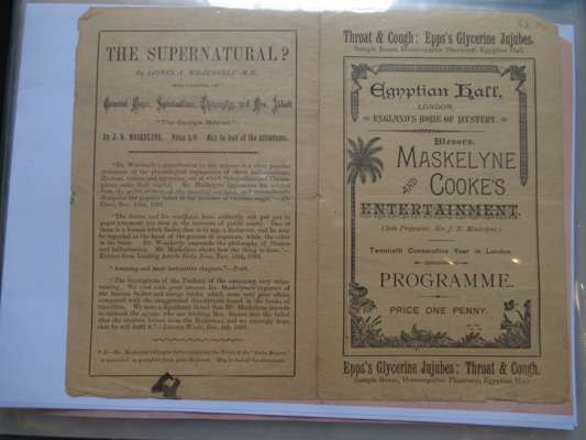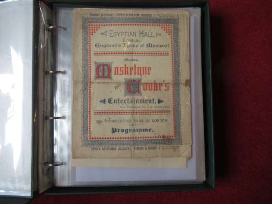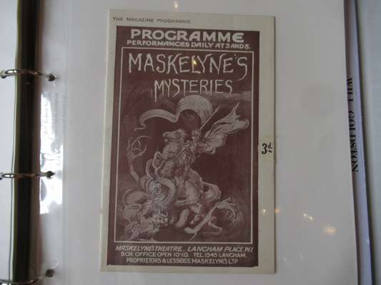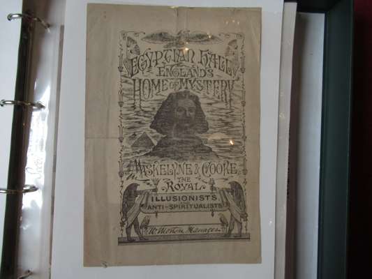 Programme for Maskelynes Theatre of Mystery, Langham Place (1919), several articles extracted from The Strand Magazine on Maskelyne, Maskelyne and Cooke's Programme (undated), 1 original postcard, Egyptian Hall England's Home of Mystery, 9 programmes, most undated, one 1908, (Maskelyne & Devant's Mysteries), 3 repaired with sellotape, 3 later reproduction photographs;