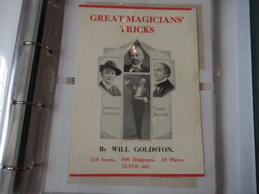 Will Goldston. 2 items promoting Secrets of Famous Illusionists and A Magician's Swan Song, & Great Magicians' Tricks, 5 items depicting Goldston tricks, 2 subscription tickets for The Magician Monthly, 2 visiting cards, one photographic, typed letter from Will Goldston Ltd, 1947, saying Goldston is indisposed; cut letterhead of Mahatma's Magical & Novelty Co. (1919);