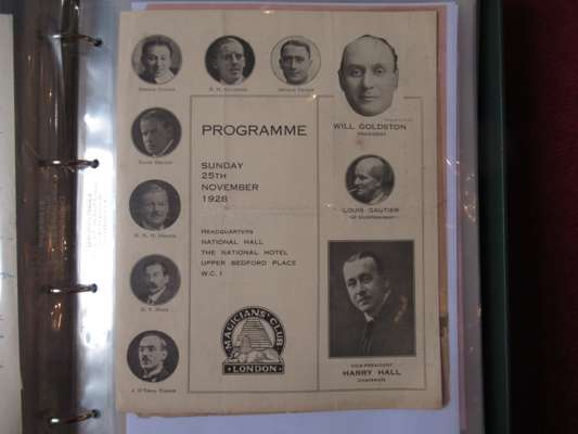 Magicians' Club London Programme for 25 Nov. 1928; Autograph letter and postcard from Will Goldston, one to Robelly Illusionist, Programme for Maskelyne & Devant's Mysteries at St. George's Hall; and a few modern comics (3 ring binders)