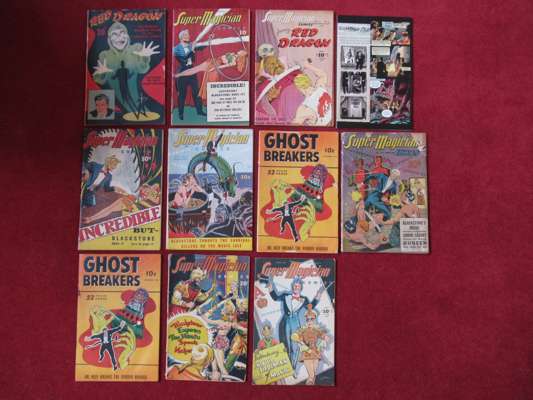 Magic Magazines. 2 ring binders containing Real Fact Comics (1, trimmed, without date but priced at 10 Cents), Blackstone Master Magician (vol. 1, no 2, priced 10 Cents), The Immortal Doctor Fate (1), Daring Escapes (1), Super Magician (7: dating from1943, 1944, 1946, 1948, and 2 without dates but priced at 10 Cents), Red Dragon (vol. 1 no. 3, December-January 1947 & vol.1 no.1, May 1948), Ghost Breakers (Dec. 1948); Programme for Maskelyne and Cooke's Entertainment at Egyptian Hall, London (x3), Professor Hoffmann's Magic and Mystery at St. Mark's Regent Park, 1881;