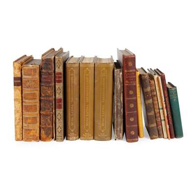 Morris, William The Earthly Paradise. London, F.S Ellis, 1870. 4 volumes, 8vo, green cloth; The Property of Robert Burns London, Caxton Publishing Company Ltd. 4to, 4 volumes, blue cloth gilt; Memoirs of a life in Pennsylvania Edinburgh, William Blackwood and Sons, 1822. 4to, quarter calf; Patmore, Coventry Angel in the house. London and Cambridge, Macmillan and Co. , 1863. 8vo, 2 volumes, gilt brown morocco; Temora London, 1763. 4to, rubbed brown calf; Galt, John Voyages and Travels. London, T. Cadell and W. Davies, Strand, 1812. 4to, half red morocco; Oliphant, Mrs. Lilliesleaf. London, Chapman and Hall, 1876. 8vo, gilt half calf; Bacon, Francis A Natural History. London, William Lee, 1658. 4to, gilt green calf; Reid, Thomas Essays on the Active Powers of Man. Dublin, P Byrne and J Milliken, 1790. 8vo, brown calf; Percy, Thomas Reliques of Ancient English Poetry. Leipzig, Bernhard Tauchnitz, 1866. 8vo, green half calf; and 117 others, sold not subject to return (134)