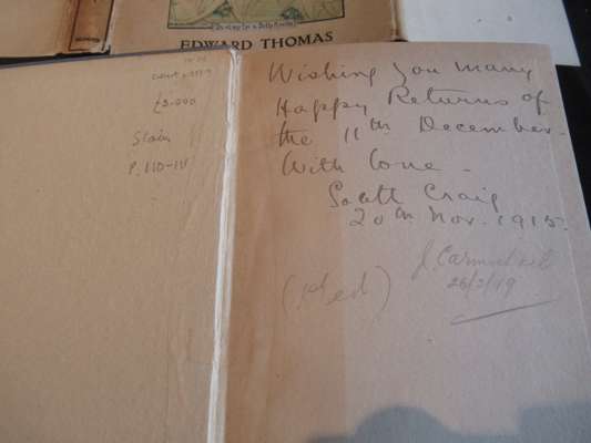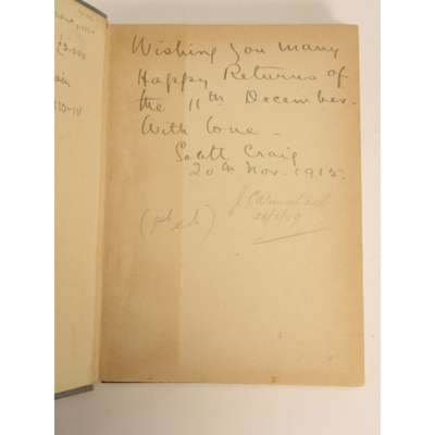 London: Duckworth & Co., 1915. First edition, 8vo, original blue cloth gilt with dust-jacket, gift inscription to flyleaf, tipped in frontispiece, 16pp. adverts at rear, a little foxing and occasional soiling, spillage marks to pp.110-111, spine faded, slight rubbing to covers, dust-jacket slightly chipped and soiled